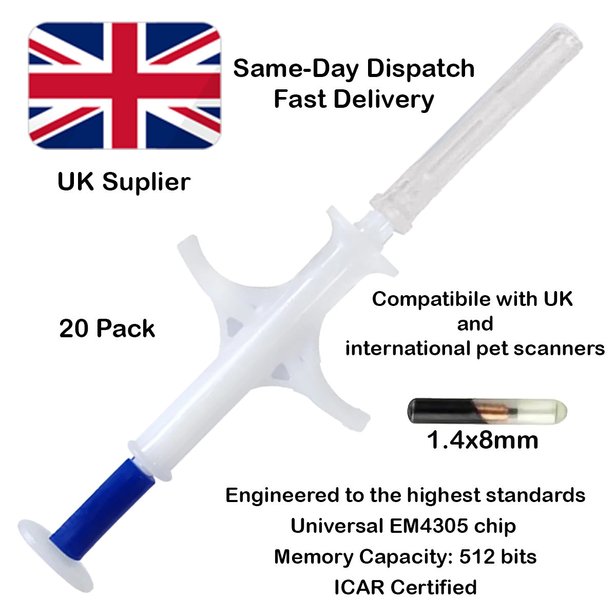 Microchips4Pets | (Eco Set) | (20-Pack) | Home Microchipping Kit For Dog Cat Puppy Kitten (1.4x8mm)